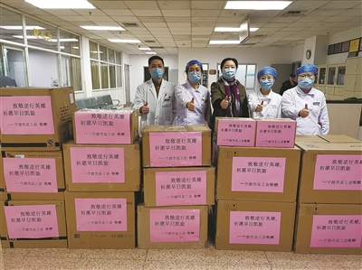 爱心货车缘起一句无心之语。李惠利医院副院长、工会主席白亮是此次该院驰援镇海医护人员的总领队。他说,目前在镇海的所有保障都很到位,唯一有点小遗憾,因为吃的是盒饭,由于忙碌,医护人员都不能按时吃饭,天寒饭菜也容易冷,如果能吃上一口热乎的饭菜就好了。