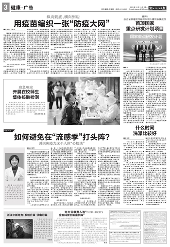 吕华坤所长介绍,自2020年9月28日浙江省率先启动新冠病毒疫苗紧急接种至今,前期已分阶段有序完成了重点人群紧急接种、18-59岁年龄段全人群接种、60岁及以上老年人群接种和12-17岁青少年接种任务。常态化疫情防控下,我们需要继续用疫苗编织一张纵向到底、横向到边的防疫大网。疫苗消灭了天花,有效地控制了脊髓灰质炎、白喉、乙肝、麻疹、流脑和乙脑等曾经严重危害儿童健康的传染病,我们坚信,在政府部门支持、技术部门保障以及全社会的动员参与下,新冠病毒疫苗必定助力早日打赢这场防疫攻坚战。