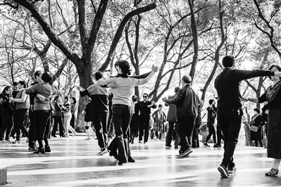 衢州市区孔子文化公园的钟灵塔下,只要天气晴朗,就会有中老年舞蹈爱好者在音乐声中翩翩起舞。近日,一个晴朗的午后,初冬的温暖阳光透过树林枝叶,照耀到中老年舞蹈者身上,折射出他们快乐幸福的生活。