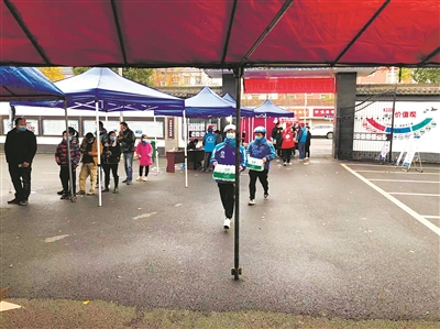 | 抗疫轻骑志愿队成员将物资送到核酸检测点。 |