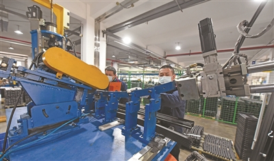 近日,在仙居县经济开发区的浙江兴宇汽车零部件股份公司生产车间,工人在自动生产线上作业。连日来,仙居县经济开发区各企业在做好疫情防控的前提下,加班加点抓生产赶订单,呈现出热火朝天的生产景象。