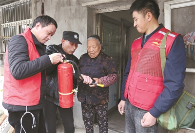 近日,玉环市龙溪镇消防安全志愿者、党员红色网格员来到龙溪镇山里村,分头敲开独居老人、高龄老人的家门,在对室内用火、用电设备等消防安全进行了查验、纠正的同时,还为老人家送上灭火器、教会老人灭火的简单方法,让老人们平安过寒冬。