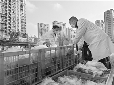那几天让于军印象最深刻的就是从四面八方装载着各种生活物资的车辆,源源不断送来。卸货、分拣、打包、重新装车、每家派送,临时组成的突击队,很快就组建了一条物资保障“流水线”,环环相扣的每个点,忙碌而有序。“俞群伟是我们几个人里年纪最大的,但他就像个老大哥,把最重的体力活都揽走了。”于军回忆当时的一幕,心里尽是满满的感动。