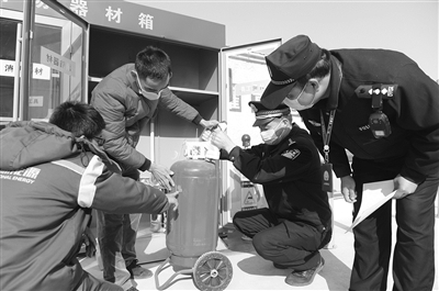 为进一步做好冬季安全防范工作,日前,东阳市公安局南市派出所组织民警对辖区重点企业、场所等开展安全大检查,全面消除安全隐患,确保辖区平安无事故。图为民警在一加油站检查。通讯员蔡伟华 摄