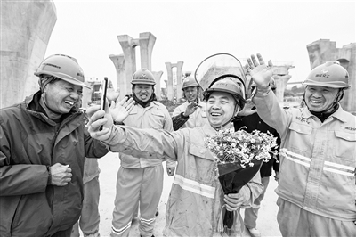 1月1日,金华市重点建设工程——235国道金东安里至楼店段工程楼店互通建设工地上,钢筋工彭和平意外地收到一束鲜花,工友们为他庆祝32周岁生日。