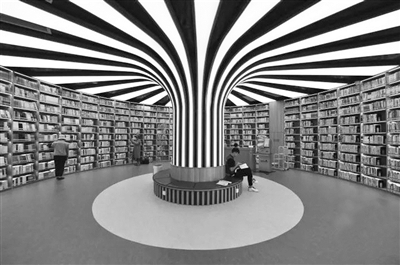 书房一层设有运河文献专题书架,详细记录了博大精深、源远流长的运河历史文化的发展历程。置身于此,犹如躲在了一朵发光的蘑菇下,思绪仿佛也被无限延伸……二层带给读者更多的是休闲,整洁的空间里书架错落有致,几何形金属框架悬在天花板上,让空间不再单调。沙发上一坐,拿起一本书,在阅读中会知己、知世界,时间仿佛都变得缓慢了起来。