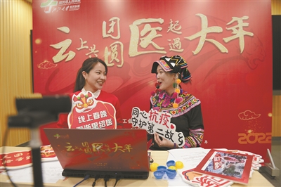 本报讯 通讯员丁凯摄影报道 一场以“云上共团圆,‘医’起过大年”为主题的线上直播活动日前在绍兴市人民医院举行。该院工会、团委、妇联特别组织了线上直播活动,通过“医起过大年,说说咱家乡”等线上互动环节和文娱节目向全体员工介绍不同地域在过年民俗、特色饮食方面的差异,让他们留在医院也能感受到家里的温暖。活动中,来自五湖四海的医院职工用家乡话送上了新春的祝福,表达了对新一年美好的期盼。