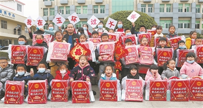 1月24日,玉环市龙溪镇政府大院里,50名留在玉环过大年的新玉环人小朋友,收到了玉环市总工会、龙溪镇总工会志愿者、党员志愿者赠送的勤学福袋大礼包,点亮“小候鸟”新年微心愿,乐过第二故乡幸福年。通讯员詹智 摄