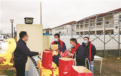 由于疫情防控需要,中化兴中公司对其岙山基地两座30万吨级码头负责外轮靠离泊作业人员实行“14+7”专班轮回作业的封闭管控措施,意味着部分员工春节只能在岗位上或隔离点过了。1月27日,公司领导班子分头手捧萌萌哒的虎年吉祥物——瑞虎,以及春节大礼包,慰问将在岙山基地隔离区过春节的员工,送去新春的祝福和人文关怀。通讯员应红枫 摄