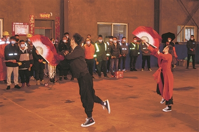 1月27日,宁波舟山港北仑矿石码头分公司工会将职工自编自导自演的歌舞表演与大礼包送入现场一线班组,为425名留甬过年的外地职工送上新春慰问和祝福。
