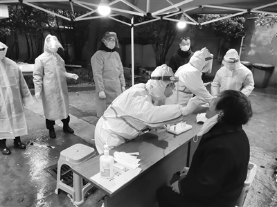 在景华社区的核酸检测采集点位,工会工作者们穿上防护服,冒着风雪协助医务人员为居民们做好信息登记、排队引导等工作。区总工会两名骨干党员冲锋在前,加入区疫情防控效能督查组,全天候值守区政府指挥中心,直接投入全区涉疫人员、涉疫场所和社会面管控情况的督查工作。