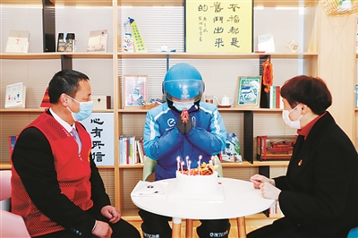 “忙碌的他们让这个春节多了一层‘了不起’的底色,我们要让他们感受到‘嘉’就是家。”除了赵云飞,还有其他3名同样在春节假期过生日的骑手,分别收到了来自平湖白金汉爵大酒店、平湖隆聚时令海鲜餐饮公司、老当湖大酒店精心准备的丰盛年菜以及工会策划的生日惊喜。范海珠说,自从疫情发生以来,她就把每年春节的走亲访友变成了驿站“串门”。早在年前制订“串门”计划时,范海珠就把春节期间骑手的生日融入其中,将这份生日惊喜作为“串门”的一部分,为奋斗在服务一线的骑手小哥们,传递来自“娘家人”的温暖。