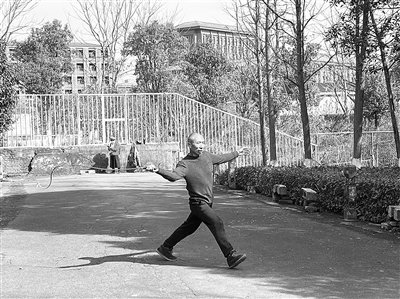 大爷说,自己练习麒麟鞭有近一年时间了,只要天气晴朗,每天都会出门练习。只见他身着单衣,长长的鞭子甩过头顶,发出巨大的声响,声音清脆,穿透力非常强。