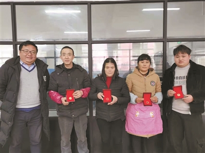 | “西赛德”相关负责人向工作满5年的员工发放“纪念金牌”。 |