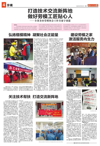 浙江工人日报 劳模 00004 建设劳模之家 激活服务内生力 2022-02-24 2 2022年02月24日 星期四
