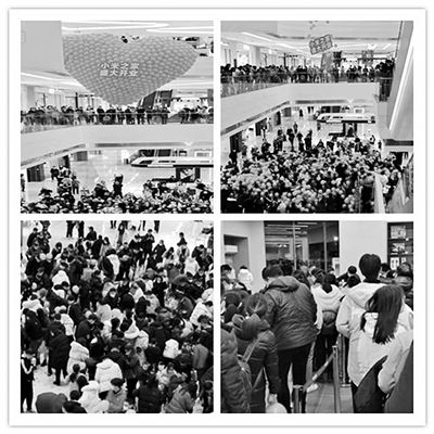 日前,记者走进萧山银泰百货商场,只听旁人说:“注意看,这店里开业正在搞活动。”循着声音望去,只见商场大厅中央密密麻麻地站着好多人,都在翘首以盼,等着大厅上空悬挂着一只巨大“心”状网袋内装着的上千橙色气球落下,因为部分橙色气球里商家放进了写有书包、电饭煲、圆珠笔等奖品的纸条。
