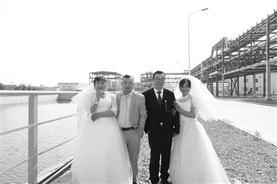 下午1点多,拍摄准时开始。“新娘把手花放低一点,新郎请含情脉脉地看着新娘……”在摄影师的指挥下,一对对夫妻在他们日夜奋斗的工地上,深情对望、牵手拥抱。满是钢筋水泥的工地、平时生活的工地板房、大型工业装置设备都成为他们的拍摄背景。浪漫幸福的气息荡漾在项目工地里,引来不少工友围观祝福,大家纷纷用手机拍摄下一幕幕幸福瞬间。