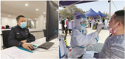 | 左为埭溪派出所民警秦麒辉,右为埭溪医院医生沈倩云。两人都在各自的岗位上忙碌,坚守抗疫一线。 |