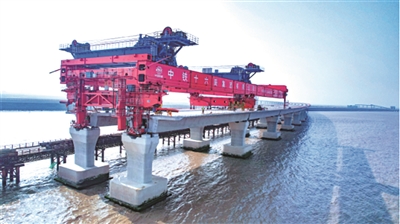 3月9日,浙江省交通集团杭甬复线宁波一期项目滨海高架桥施工现场,历经3小时的架设,又一片预制箱梁在桥墩上精准“着陆”。