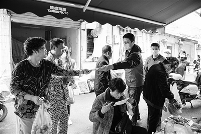 | 工会志愿者在菜市场开展戴口罩劝导。 通讯员林金坚 摄 |