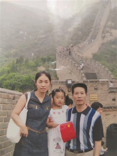 | 女儿小时候,张惠萍一家三口游长城。 |