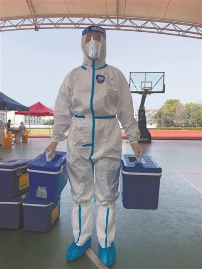 毛朝阳、姚磊报道 在衢州市疫情防控一线,有一位特殊的“快递员”:身穿“大白”、驾车穿梭在大街小巷中;停下车手提“蓝箱”,步履匆匆,奔波前往核酸检测采样点,争分夺秒地与病毒赛跑……他是核酸检测样本转运员,每天都要用最快的速度收集核酸检测样本,然后打包转运。