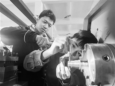 与此同时,施老师以《车削铣床夹具芯轴》为课题,安排了课堂实训任务。“要把尺寸精度控制在十分之一的头发丝直径内。”施老师通过统一讲解和分别指导,帮助学生把控车削精度的要领。同学们反复5次甚至10次进行加工训练,直到每个尺寸都符合要求,才满意地上交实训作品。