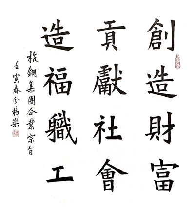 2022年4月2日,春回大地、万象更新的时节,杭钢集团迎来65周岁的生日。走过65载风风雨雨,杭钢虽历经沧桑而百折不挠,如今繁锦若斯,青春正盛。在这喜庆的日子里,杭钢文联书画协会的会员们挥毫泼墨,抒发对企业的热爱、祝福和感恩之情,展现出杭钢员工多姿多彩的文艺才能和蓬勃向上的精神风貌,在“劳动托起中国梦”的时代征程中,以劳动者的独特视角和原生体验,传递万众一心的逐梦激情。