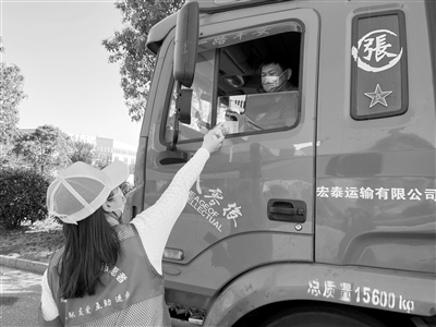 为服务好集卡司机,日前一大早,朱贤长组建了一支二十余人的志愿者队伍,同社区社工一起,专门服务滞留在园区的集卡司机。当天,他带领队伍逐个给集卡司机送达“驾驶员告知书”,并发放泡面和矿泉水等基本物资,同时,告知货车司机们每天就近做一次核酸。