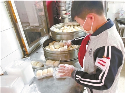 | 高淏在分装包子。 |