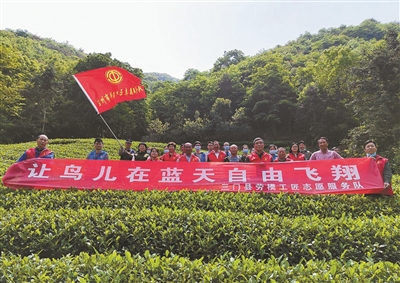 本报讯 通讯员奚淑瑾、吴昊宇 记者潘仙德摄影报道 4月20日,恰逢野生动植物保护月和第41个“爱鸟周”,三门县总工会联合县人民检察院、县消防救援大队开展进企业入农户“让鸟儿在蓝天自由飞翔”主题宣传活动。