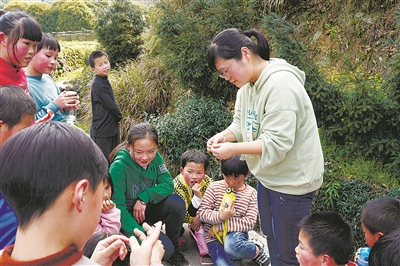 除了主持读书会的观察一棵树活动之外,林捷还与诸暨一家学校合作,带着孩子们观察自然,“相当于给他们找了一个树洞,让他们去跟自然交流。”
