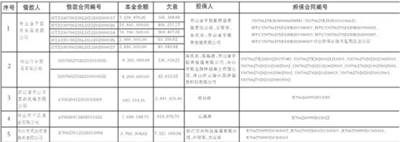 | 注:清单中“担保人”包括保证人、抵押人、出质人,担保人的担保范围以签署的合同等法律文件约定为准。如公告中债务人、债权金额、担保人等信息与事实不符的,以签署的合同等法律文件约定为准。 |