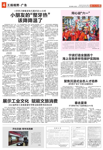 本报讯 记者金钧胤 通讯员朱智翔报道 日前,2022年国际生物多样性日宁波市主题宣传活动在象山亚帆中心举行。活动发布了生物多样性保护本地调查结果,启动了象山海上生物多样性保护实践地建设。至此,象山成为宁波市最早对外公布生物多样性保护本地调查结果的区(县、市)和全国首个打造海上生物多样性保护实践地的城市。