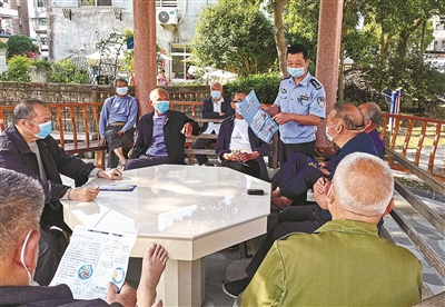 近日,台州市公安局椒江区分局章安派出所社区民警王喜元走进下洋村,向农村老年人宣传如何防范诈骗方法,提高老年人防诈、反诈意识,守住“养老钱”。