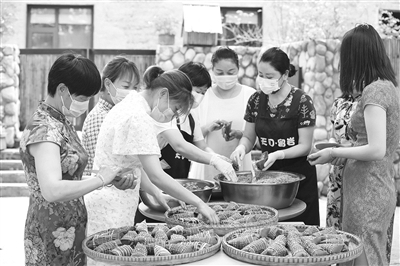 端午节来临,杭州市临安区天目山镇天目村“村落景区”里,当地村民和党员、巾帼志愿者们通过包粽子、做香包等丰富多彩的民俗活动,迎接端午传统佳节的到来,新鲜的粽叶,精选的食材,亲手包裹的粽子,吃起来就是香。通讯员胡剑欢 摄
