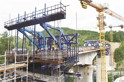 昨日,建设者正在杭温铁路磐安县小岭大桥项目现场施工作业。端午假期,中铁上海工程局建设者放弃休息,坚守岗位施工,确保项目进度。