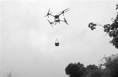 崇山峻岭之中,一架载着“杨梅”的无人机腾空而起,几分钟后,缓缓降落在平坦的山地上。在慈溪市横河镇大山深处,一架无人机成功把一篮重约20公斤的“杨梅”运达目的地。
