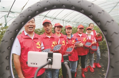 昨日,玉环市龙溪镇蕲春党建工作站组织10多名外来流动党员冒雨来到龙溪镇大密溪村蓝莓园里,帮助果农抢摘蓝莓,并拍摄短视频、图片,在抖音、微信等自媒体上出镜为果农代言,替果农吆喝,帮助果农解决梅雨季节蓝莓采摘、销售难的难题。