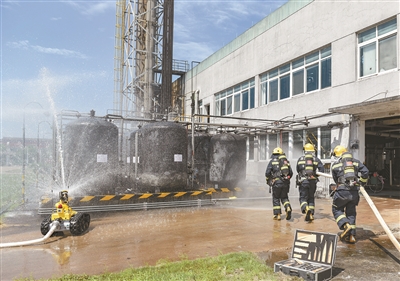 本报讯 记者羊荣江 通讯员孔德宾、李建林摄影报道 今年6月是第21个全国“安全生产月”。 近日,金华市应急管理局、婺城区安全生产委员会在婺城区白龙桥镇临江工业园区举行了金华市危险化学品事故应急救援演练。此次演练旨在全面提升安全生产事故统筹指挥效能,快速科学高效处置危险化学品安全生产事故,最大限度保障人民群众生命财产安全。