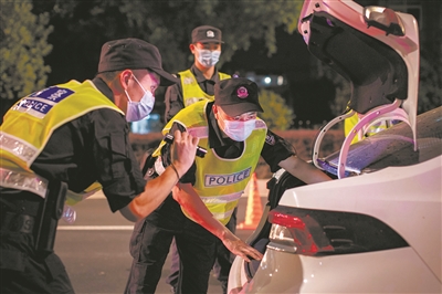 6月13日夜,台州市公安局黄岩分局巡特警大队民警在交通要道设卡,对可疑车辆进行盘查。入夏以来,黄岩公安分局强化夜间治安巡逻和设卡盘查工作,预防和压缩违法犯罪空间,守护辖区平安。