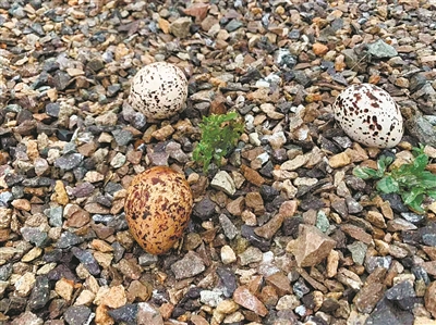 “那是一个阳光和煦的清晨,一只大凤头燕鸥看中了一片平平无奇的碎石地,这里平整,一侧有水泥护栏,蛋不会滚下去,附近还有些许刚刚好的绿植……当然,更大可能是,蛋憋久了难受,燕鸥没多想就找个地方卧了下去。经过大概两个小时,太阳越来越毒辣,最终一颗圆润的蛋来到了小岛。”陈艺在《海岛周记》中写道。