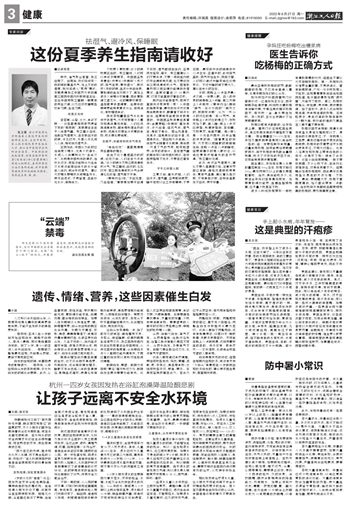昨天,省气象台官宣:浙江出梅了。出梅后,我们将迎来一段时间的高温天气,加上不低的湿度,杭州将进入“蒸烤”模式。本期邀请浙江中医药大学附属第三医院中医内科教研室主任,主任中医师张卫星聊一聊夏季的养生之道,以及应该改善哪些饮食习惯、生活习惯。