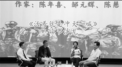 | 宁波本土优秀作家陈慧、邹元辉与陈年喜进行对话交流。记者张浩呈 摄 |