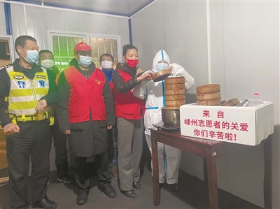| 劳模为抗疫一线工作人员送关爱。 |