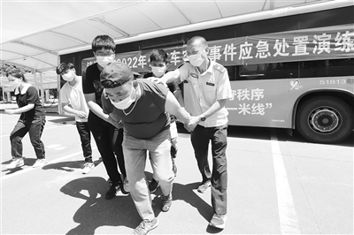 模拟演练设定一名乘客刷卡后不愿出示行程卡,与驾驶员发生争执。经劝解后出示行程卡入座,后突然情绪激动,直接伸手夺方向盘致公交车发生碰撞……最终驾驶员按照预定程序化解危机。