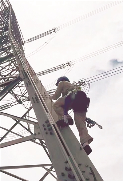 “塔上的温度能超过50℃,隔着手套都会烫手。”小林告诉笔者,当天的气温比起前几天的并不算高,他们开展的也是线监测维护检修工作,相对简单。因为近期要保民生用电,不用开展极其耗费体力的停电检修工作。但一旦出现故障要紧急抢修,那工作强度就不是眼前的“小儿科”了。
