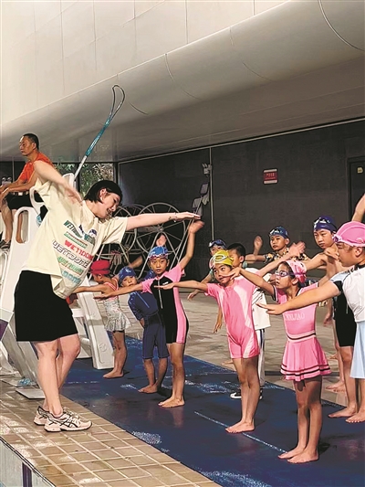 | 叶诗文对小朋友进行游泳技术指导。实习生蒋晓珂 摄 |