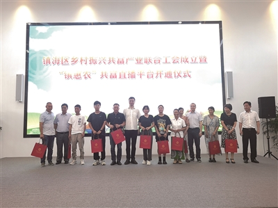 | 7月2日,镇海区乡村振兴共富产业联合工会成立暨“镇惠农”共富直播平台开通仪式举行。 |
