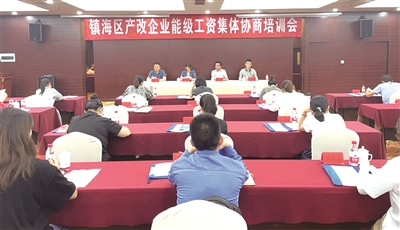 | 6月30日,区协调劳动关系三方组织区内“产改”企业能级工资集体协商培训会在区委党校举行。 |